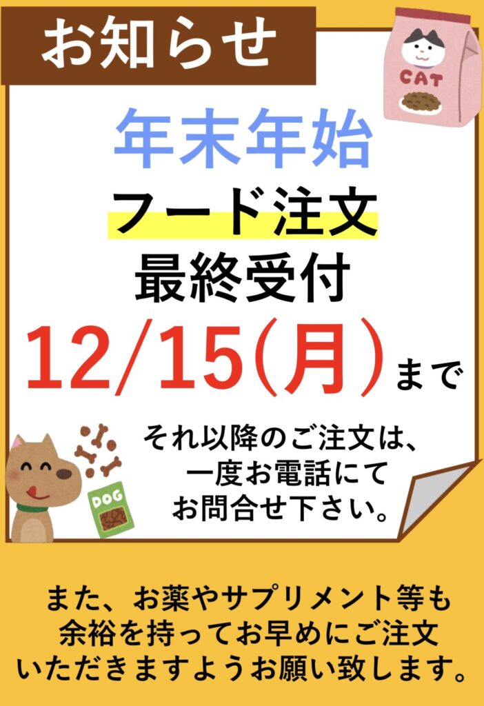 年末年始のフード購入についてのページ。日進市梅森台の動物病院なら、梅森どうぶつ病院
